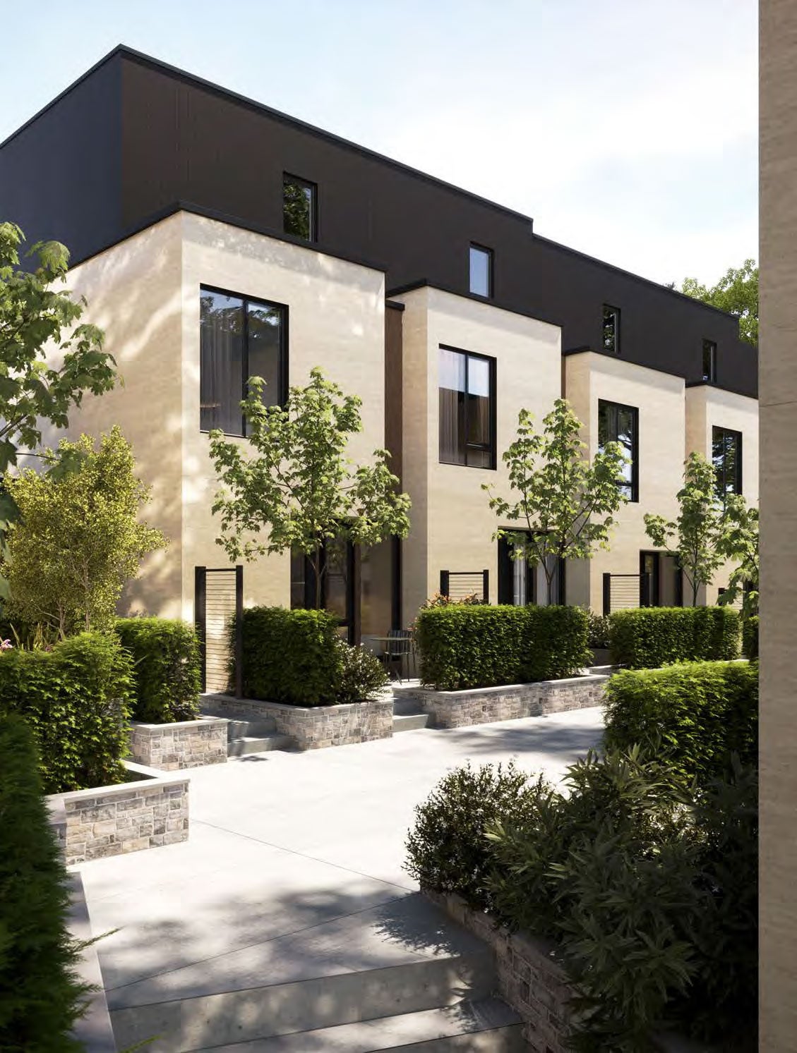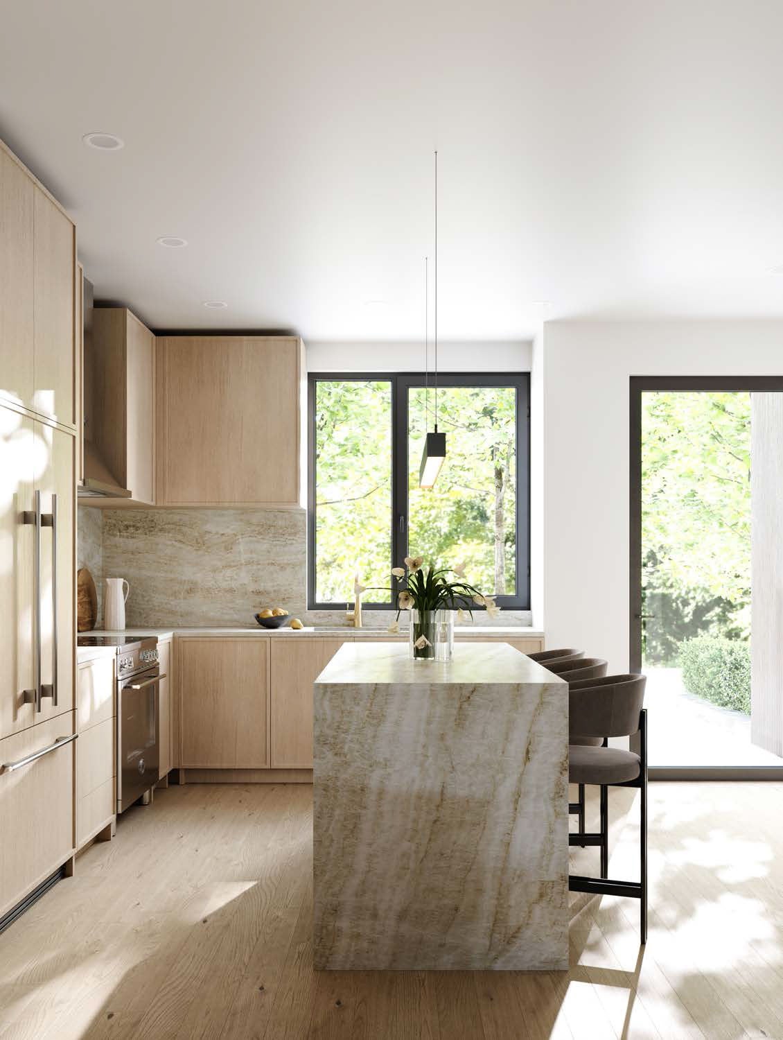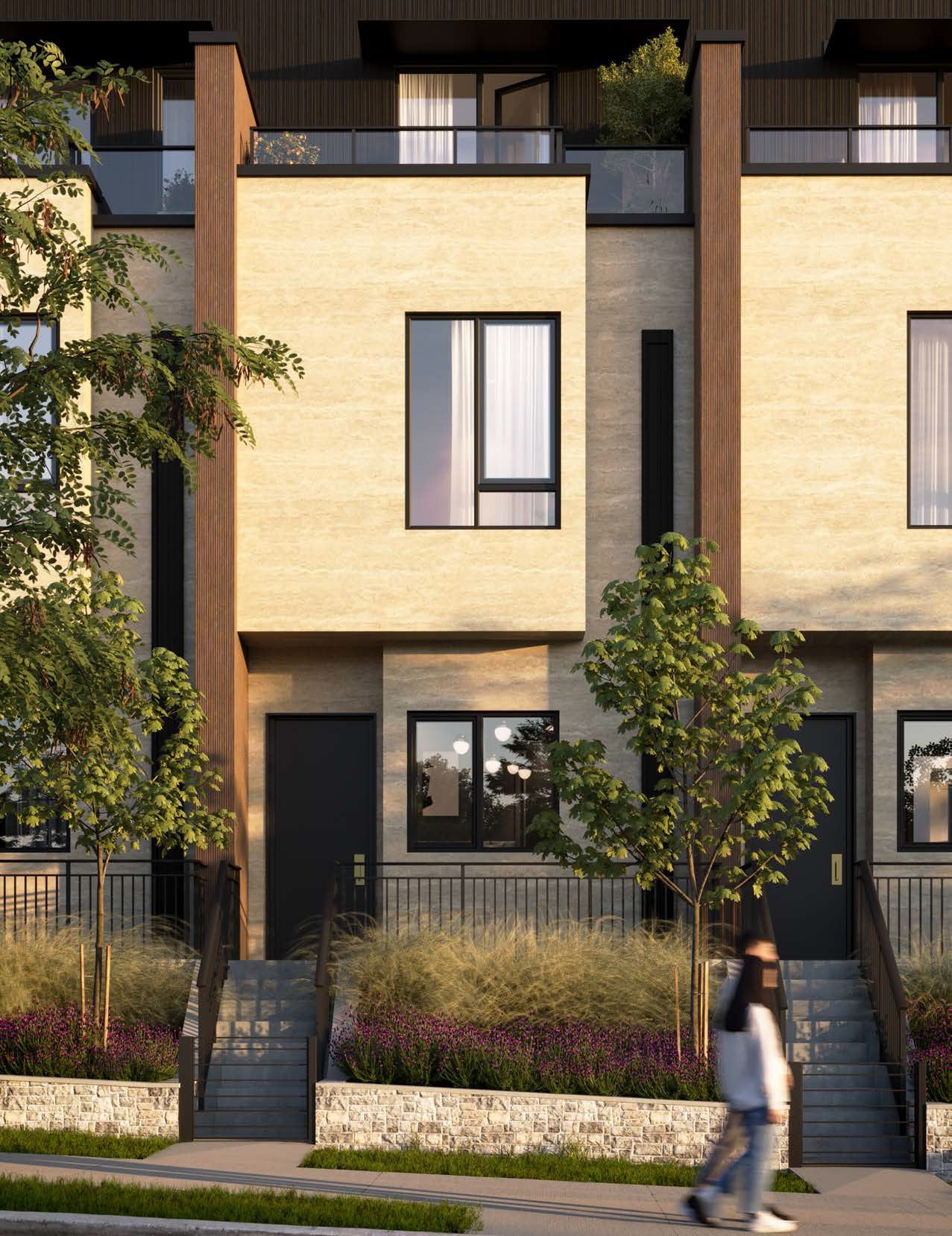 Each residence is thoughtfully designed for elevated living: true unstacked townhomes with private entries, expansive layouts, triple-glazed windows, and interiors curated with natural materials, wide-plank oak flooring, and premium appliances. A landscaped central courtyard adds serenity to this exclusive gated community, while EV-ready parking ensures future-forward convenience.