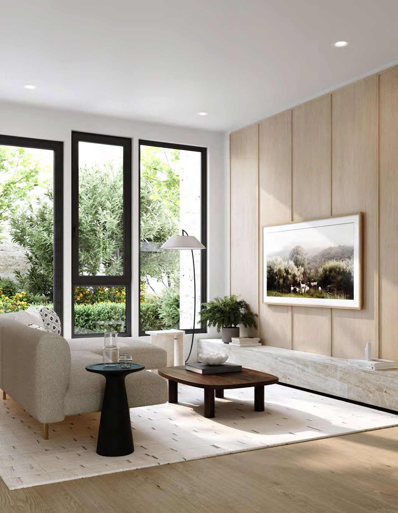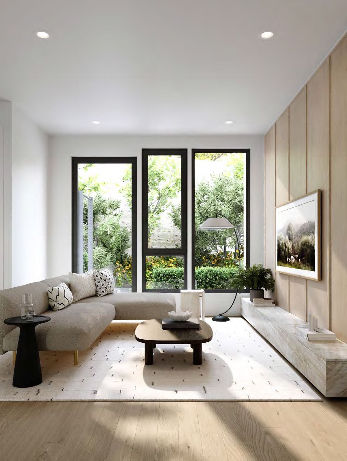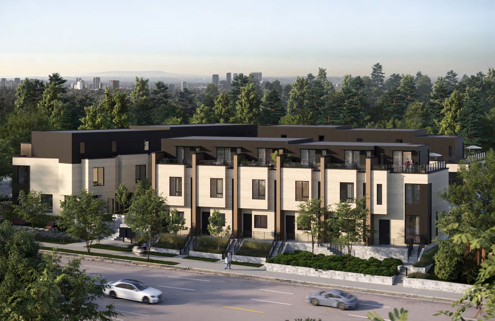 Each residence is thoughtfully designed for elevated living: true unstacked townhomes with private entries, expansive layouts, triple-glazed windows, and interiors curated with natural materials, wide-plank oak flooring, and premium appliances. A landscaped central courtyard adds serenity to this exclusive gated community, while EV-ready parking ensures future-forward convenience.