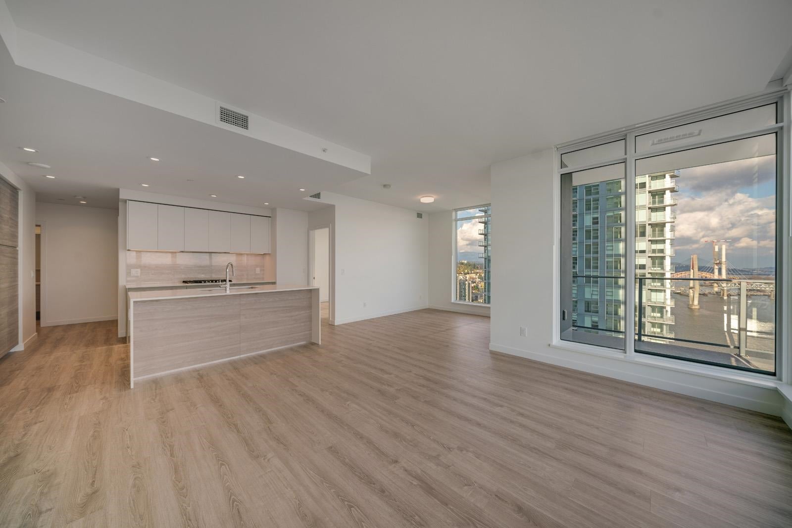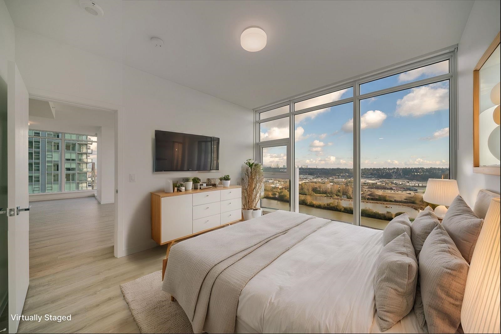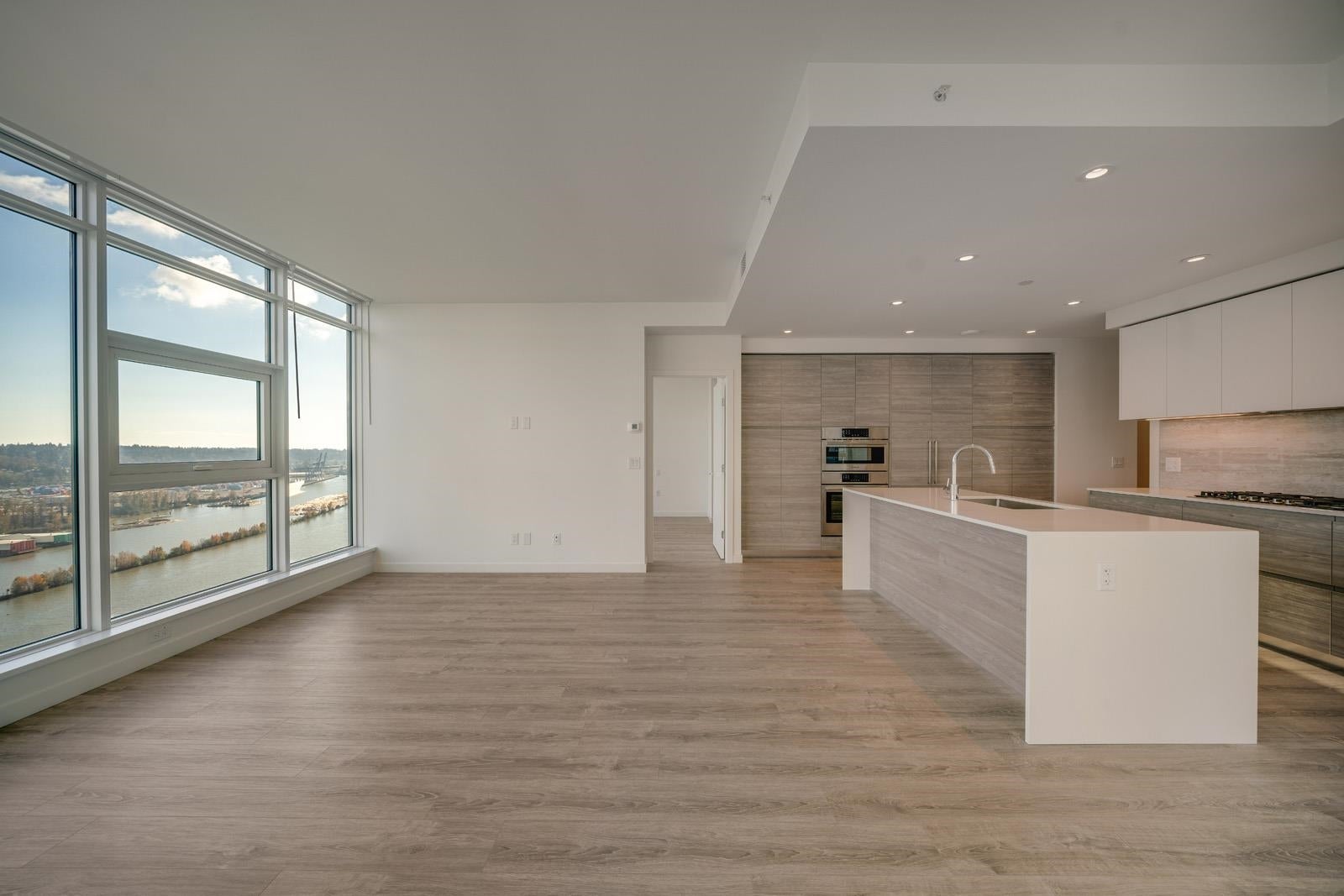 Experience premier waterfront living at PIER WEST by Bosa, in this stunning 28/f home w/panoramic views of the Fraser River. 2 Bed + Den 1237 sqft. home combines modern design w/high-end finishes w/water views from every room, featuring a chef-inspired kitchen w/BOSCH appliances, quartz waterfall countertops & ample soft-close Italian cabinetry. Efficient open-concept layout complemented by A/C & spa-inspired bathrooms, ensures year-round comfort. Residents enjoy exclusive access to the Owners' Club amenities: 24-hour concierge, gym dining room, outdoor lounges, and more, Just steps from SkyTrain, dining, shopping, and vibrant boardwalk. Includes $10K EV Charger Upgrade & Private Storage.