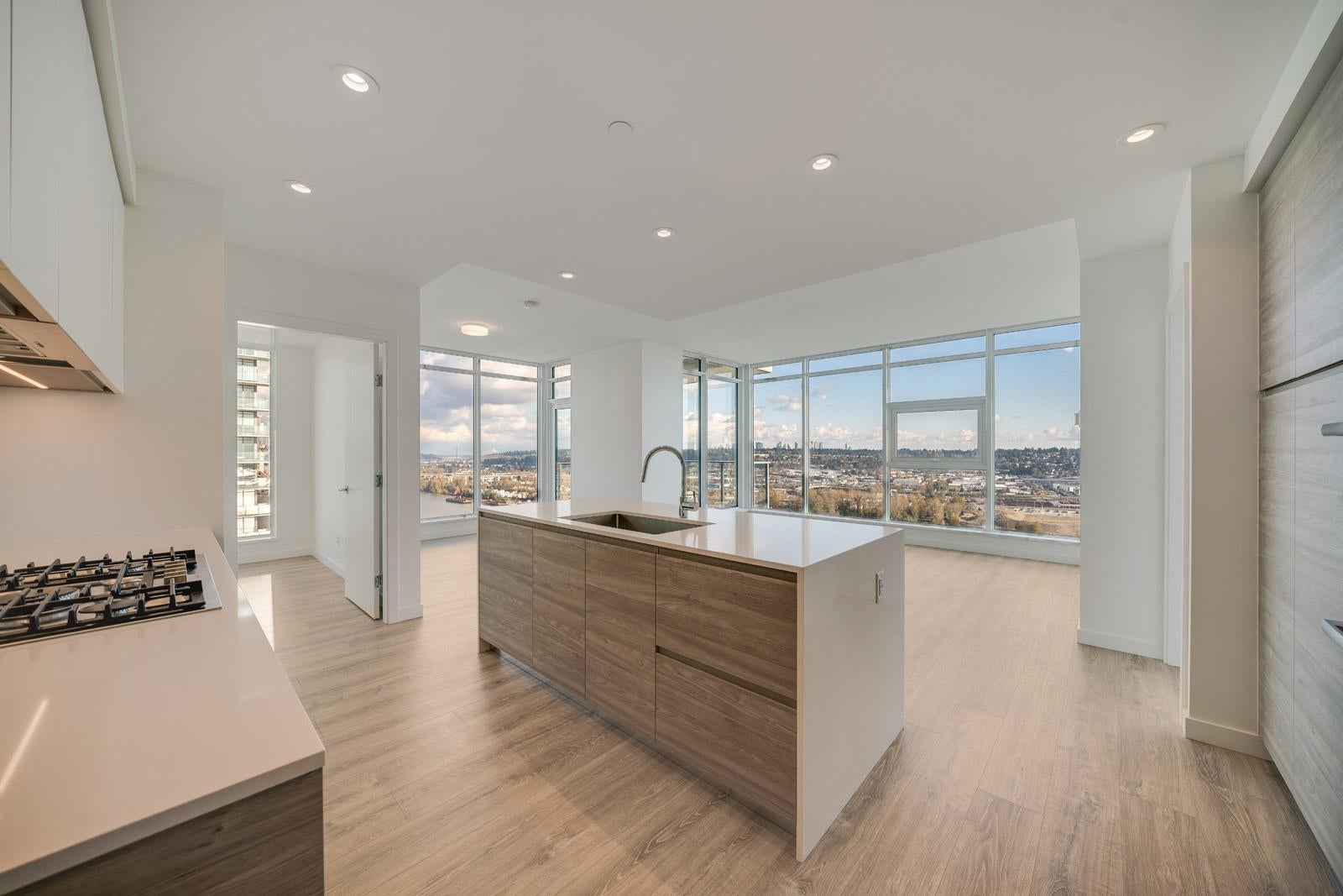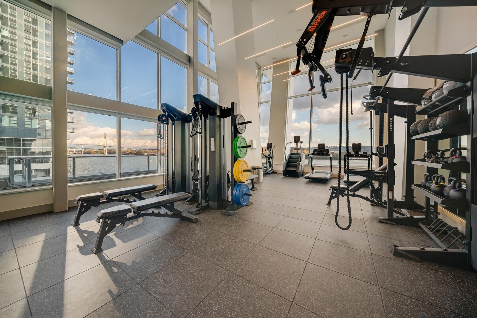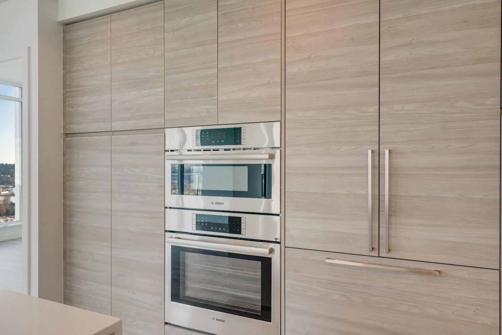 Experience premier waterfront living at PIER WEST by Bosa, in this stunning 28/f home w/panoramic views of the Fraser River. 2 Bed + Den 1237 sqft. home combines modern design w/high-end finishes w/water views from every room, featuring a chef-inspired kitchen w/BOSCH appliances, quartz waterfall countertops & ample soft-close Italian cabinetry. Efficient open-concept layout complemented by A/C & spa-inspired bathrooms, ensures year-round comfort. Residents enjoy exclusive access to the Owners' Club amenities: 24-hour concierge, gym dining room, outdoor lounges, and more, Just steps from SkyTrain, dining, shopping, and vibrant boardwalk. Includes $10K EV Charger Upgrade & Private Storage.
